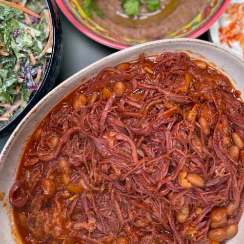 • Remove the meat from the tin and let it rest for 30 minutes before shredding.